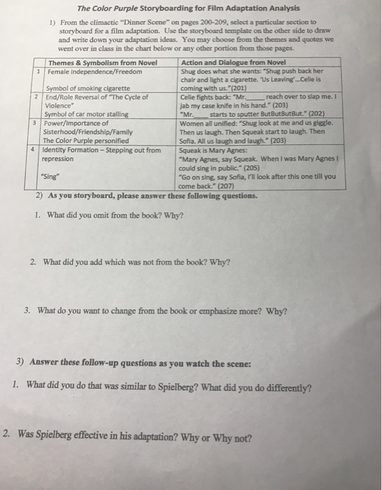 The Color Purple Storyboarding For Film Adaptation Chegg Com